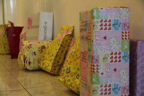 大人們準備了禮物,但是小朋友必須表演才藝才可以得到喔